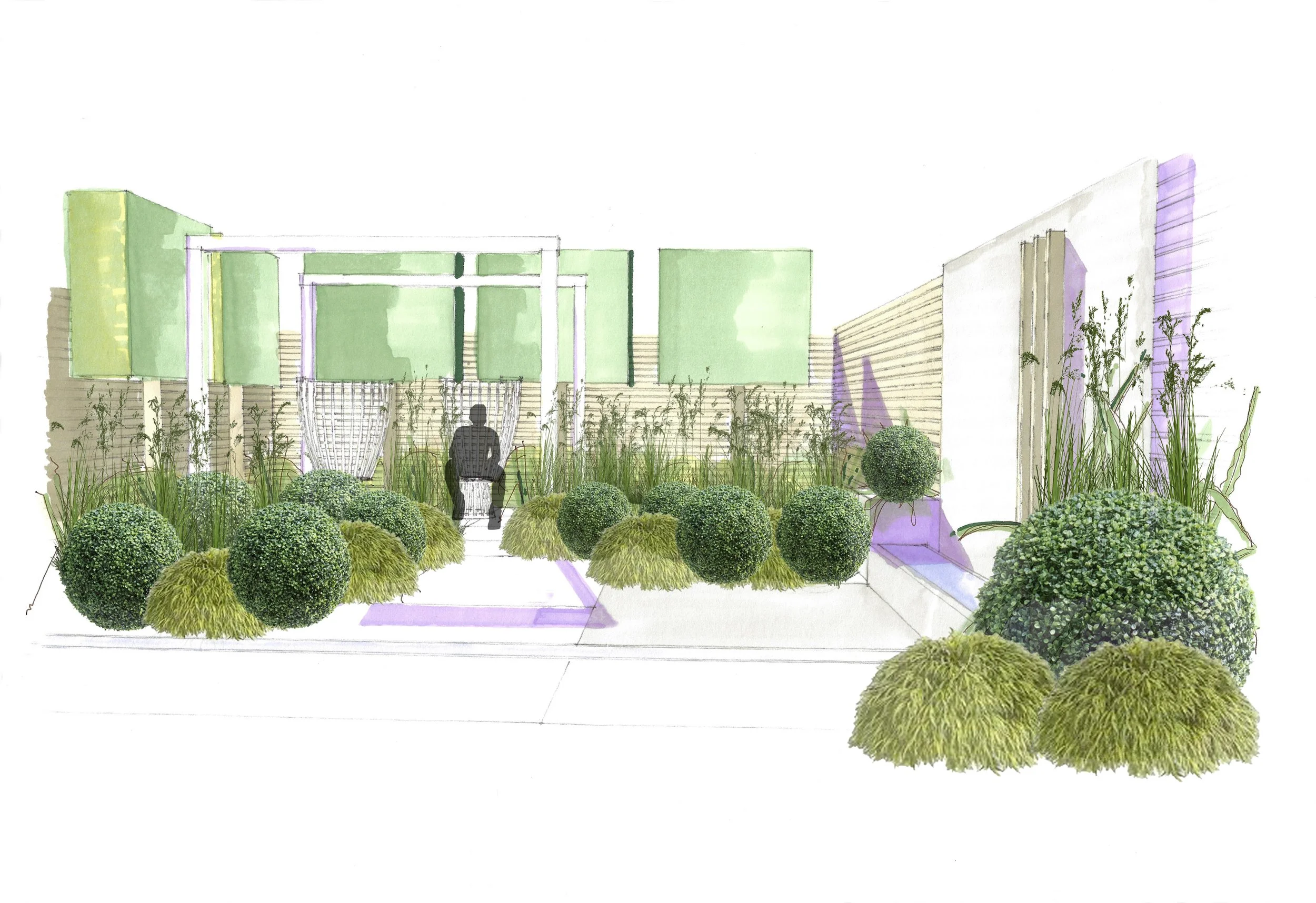 A city courtyard has been transformed from a dull and tired space to a sleek and contemporary entertaining space with rill, water feature and evening terrace. Pleached hawthorn trees and evergreen topiary provide the structure and the blowsy perennial grasses and planting ensure the space is soft and calming.